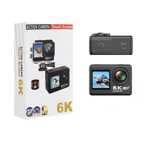 6K WiFi akciona kamera sa EIS stabilizacijom i dvostrukim ekranom Ova kompaktna akciona kamera je dizajnirana da zabeleži tvoj avanturistički duh. Vodootporna (sa kućištem), sa širokim objektivom i mogućnošću montaže na kacige, daske, vozila ili rukohvate – idealna je za ekstremne sportove, putovanja i snimke iz pokreta. Karakteristike koje je izdvajaju: Podržava 6K30FPS Displeji: Prednji 1.4 inča + zadnji 2.0 inča IPS HD Bežični daljinski ili WiFi kontrola — sinhronizuj kameru putem aplikacije ili koristite daljinski upravljač 1050mAh baterija Kontrola putem mobilne aplikacije iSmart DV2 Ugrađen mikrofon Vodootpornost: IP68 30m (uz odgovarajuće kućište) Podrška za memorijsku karticu Micro SD do 128GB Video rezolucija: 6K 30, 6K 25, 2.7K 30, 1080p 120/60/30, 720p 240/120/60/30 Rezolucija fotografije: 48M/20M/16M/12M/8M/5M/2M Type-C i Wifi konekcija 90min trajanje baterije Touch screen funkcije podržane Dimenzije proizvoda 60 x 30 x 42mm Težina 67g Uz kameru dobijate dosta dodatne opreme kao što je: daljinski, vodootporno kućište, adapteri, krpica za brisanje, kabl, trake, uputstvo... (pogledajte sliku za sve dodatke)