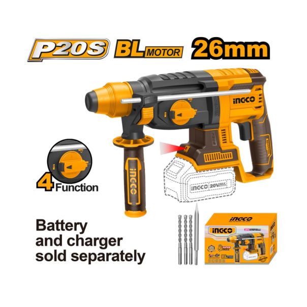 Akumulatorska bušilica CRHLI20268 20V 2,5J SUPER INGCO namenjena za bušenje rupa u betonu, cigli i prirodnom kamenu, kao i za lake radove dletom.