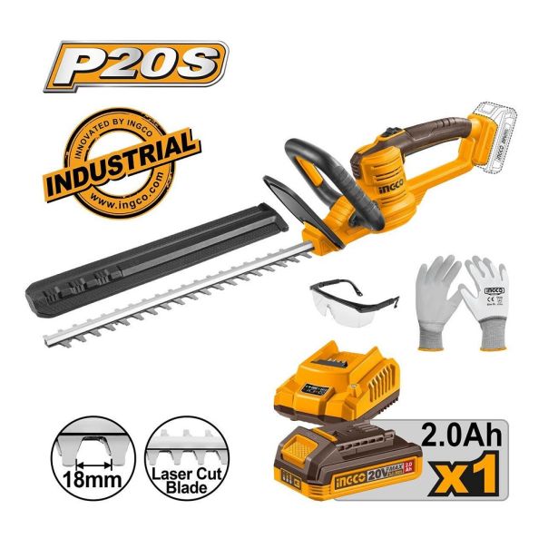 Akumulatorski trimer dizajniran za precizno oblikovanje živih ograda i žbunja bez buke i izduvnih gasova benzinskih modela. Ovaj model je deo P20S platforme, što znači da njegova baterija odgovara na više od 100 različitih Ingco alata.