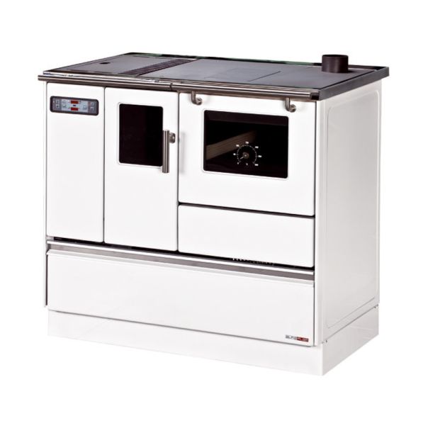 U elegantnoj beloj boji, ovaj šporet se lako uklapa u različite enterijere, dok je pozicija dimne cevi gore, olakšavajući instalaciju. Sa potrošnjom peleta od 0,64 do 1,98 kg/h, i kapacitetom rezervoara od 15 kg, ovaj šporet omogućava do 23 časa neprekidnog rada sa punim rezervoarom.