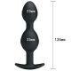 Analni dildo zanimljivog oblika za pravo analno uživanje. Izrađen je od crnog silikonskog materijala, sa donjim delom koji štiti da ne bi nekim slučajem upao u anus. Analni dildo ima dužinu od 12.5cm i prečnik u najdebljem delu mu je 3.3cm. Analni dildo unutra ima dve kuglice koje se pomeraju kada se osoba kreće što dodatno prija i daje osećaj vibracije. Naša je preporuka upotreba analnog lubrikanta na vodenoj bazi.