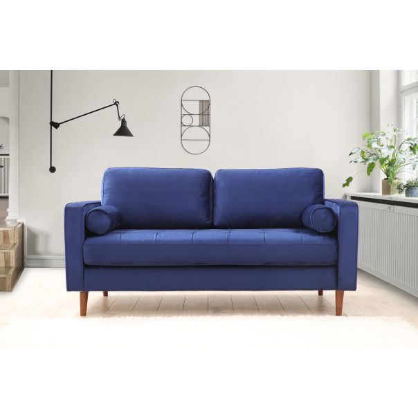 Elegantna tamnoplava boja dvoseda Rome unosi dozu sofisticiranosti u svaki enterijer. Noge od orahovog drveta dodaju prirodan i topao izgled, savršeno se uklapajući u različite stilove uređenja, od modernog do klasičnog.