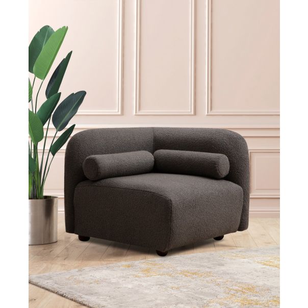 Sedišni i naslonski jastuci su fiksirani, što osigurava stabilnost i dugotrajnu formu. Fotelja dolazi sa dva dodatna jastuka, koji pružaju dodatnu podršku i udobnost. Noge od orahovog drveta dodaju notu prirodne elegancije i savršeno se uklapaju sa tamno sivom tkaninom.