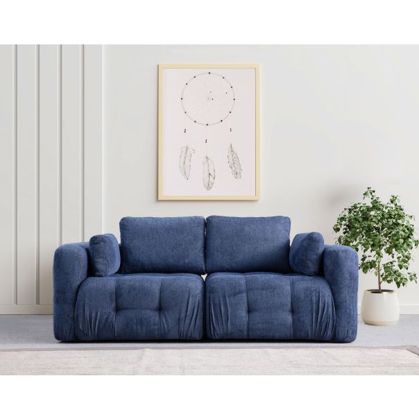 Konstrukcija dvoseda je izrađena od bukovog drveta i iverice, što garantuje dugotrajnost i stabilnost. Presvlaka je napravljena od 100% poliestera, što je čini otpornom na habanje i lako se održava. Tamno plava boja dodaje sofisticiranost i lako se kombinuje sa drugim elementima u prostoru.