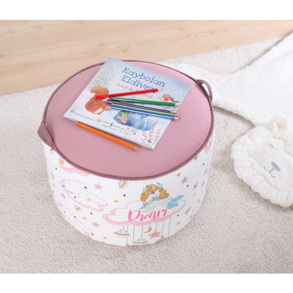 ATELIER DEL SOFA Tabure za decu Lodie dolazi u prelepom dizajnu sa motivom jednoroga, koji će oduševiti svako dete. Njegova roze i bela kombinacija boja unosi dozu magije i mašte u svaku dečju sobu, čineći ga savršenim dodatkom za igru i odmor.