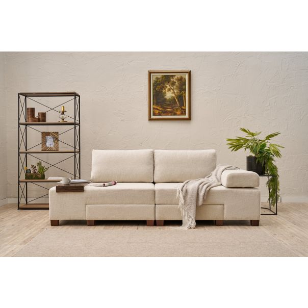 ATELIER DEL SOFA Trosed Perenna Chenille u krem boji predstavlja savršen spoj elegancije i udobnosti. Sa svojom konstrukcijom od kvalitetnog drveta, ovaj trosed je dizajniran da traje i pruži vam dugotrajnu podršku i stabilnost.