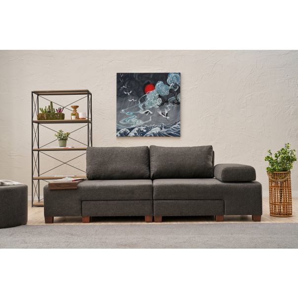 Antracit boja troseda donosi sofisticiranost i lako se kombinuje sa različitim dekorativnim elementima. Nogare su izrađene od plastike visine 7 cm, što doprinosi modernom izgledu i stabilnosti troseda.