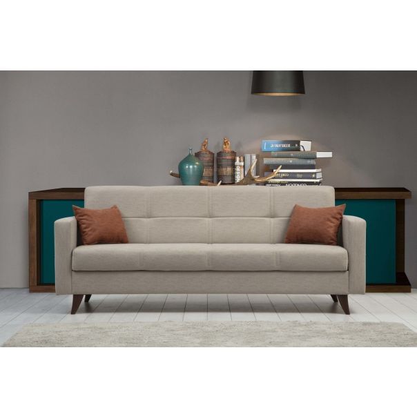 Bež boja troseda Polya omogućava lako uklapanje sa različitim stilovima enterijera, od minimalističkih do tradicionalnih. Njegov jednostavan, ali elegantan dizajn čini ga centralnim delom svakog dnevnog boravka. Osim estetske privlačnosti, trosed je i izuzetno funkcionalan, pružajući udobno mesto za opuštanje, čitanje ili druženje sa porodicom i prijateljima.