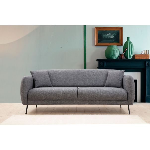 Sevilla trosed dolazi u elegantnoj sivoj boji, koja se lako uklapa u različite stilove enterijera. Noge su izrađene od mat crnog metala, dodajući moderan i sofisticiran izgled ovom komadu nameštaja.
