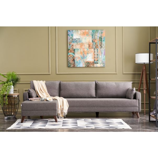 Ugaona garnitura Bella, u levoj varijanti, predstavlja savršen spoj elegancije i funkcionalnosti. Sa svojim braon finišom, lako se uklapa u svaki enterijer, dodajući mu dozu sofisticiranosti. Izrađena je od kvalitetnog jelovog drveta i iverice, što garantuje dugotrajnost i stabilnost.