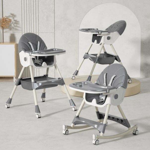 Zahvaljujući 3u1 funkciji, hranilica se može koristiti kao visoka hranilica, niska stolica ili ljuljaška – savršena za hranjenje, igru i opuštanje u toku dana.