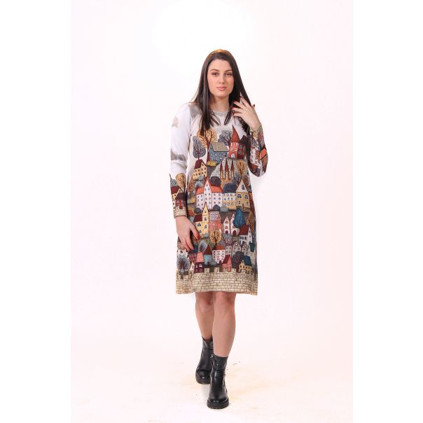 Predstavljamo vam štrikanu haljinu “Tempera”, inspirisanu bojama i toplinom bajkovitog gradića. Ključne karakteristike: 1. Premium trikotaža – Spoljašnja strana izrađena od prirodne viskoze (68%), akrila (29%) i elastana (3%) pruža mekoću i prijatan osećaj na koži. Unutrašnja postava od akrila (50%) i pamuka (50%) osigurava toplinu i udobnost tokom celog dana. 2. Bajkoviti dizajn – Živopisni motivi podsećaju na slikarsku paletu prelivenu toplim tonovima, stvarajući jedinstven, razigran izgled. 3. Lako za nošenje – Prilagodljiv kroj i rastegljiva tkanina omogućavaju lako oblačenje i udobnost u pokretu. 4. Idealna za svaku priliku – Bez obzira da li uživate u šetnji, ispijate kafu s prijateljicom ili prisustvujete posebnom događaju, haljina “Tempera” donosi savršenu kombinaciju stila i udobnosti.