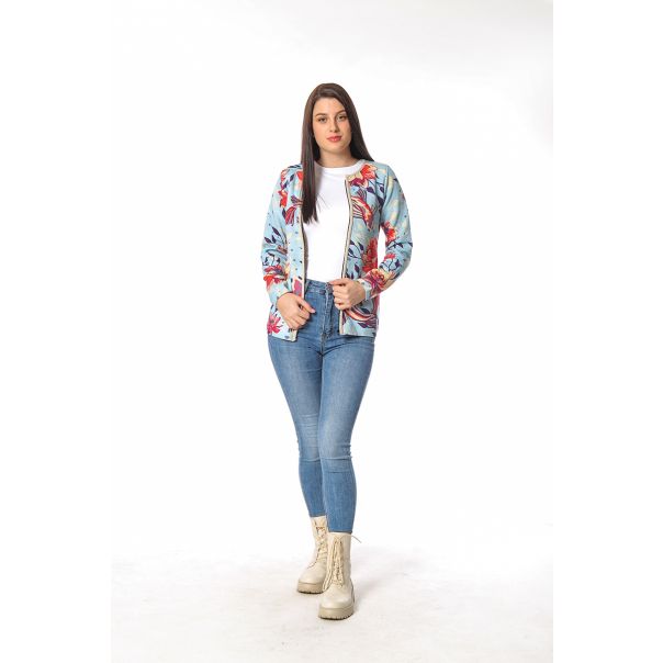 Predstavljamo vam tanki kardigan "Japanski vrt". Ovaj kardigan dočarava suštinu mirnog japanskog vrta sa svojom svetlo plavom pozadinom ukrašenom koi ribama i tradicionalnim japanskim cvetovima. Ključne karakteristike: 1. Premium trikotaža: Spoljašnja strana je izrađena od 100% pamuka, osiguravajući mekan i prirodan opip. Unutrašnja strana kombinuje toplinu i mek dodir akrila (51%) sa prozračnom udobnošću pamuka (49%), čineći ovaj kardigan savršenim spojem udobnosti i funkcionalnosti. 2. Lak za nošenje: Sa praktičnim zakopčavanjem na rajsferšlus, ovaj kardigan je lak za oblačenje, što ga čini idealnim za različite prilike. 3. Savršen za svaku priliku: Bilo da prisustvujete šarmantnom događaju ili jednostavno želite da prigrlite duh Japana, kardigan "Japanski vrt" je savršen izbor.