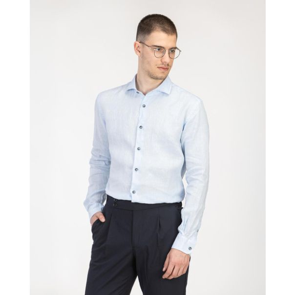 Muška košulja V-201 izrađena je od 100% prirodnog lana, što je čini idealnim izborom za tople dane i muškarce koji cene prozračnost, udobnost i prirodne materijale. Lan omogućava koži da diše i pruža prijatan osećaj svežine tokom celog dana. Njena tekstura odiše ležernom sofisticiranošću, savršenom za letnji stil sa dozom klasike.