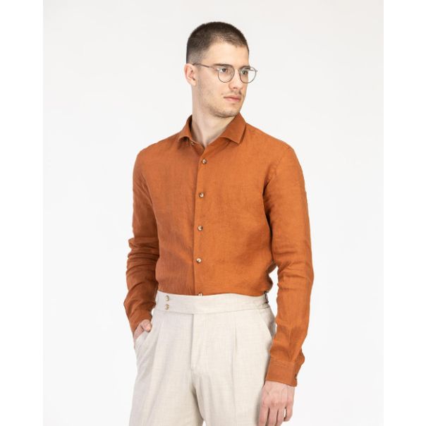 Muška košulja V-201 izrađena je od 100% prirodnog lana, što je čini idealnim izborom za tople dane i muškarce koji cene prozračnost, udobnost i prirodne materijale. Lan omogućava koži da diše i pruža prijatan osećaj svežine tokom celog dana. Njena tekstura odiše ležernom sofisticiranošću, savršenom za letnji stil sa dozom klasike.