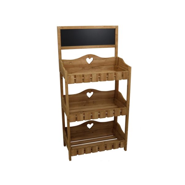 Višespratna konstrukcija pruža dovoljno prostora za saksije, začinsko bilje ili sitan baštenski pribor, dok integrisana tabla može poslužiti za ispisivanje poruka, oznaka biljaka ili dekorativnih natpisa. Ovaj detalj čini policu ne samo praktičnom, već i vizuelno zanimljivom.