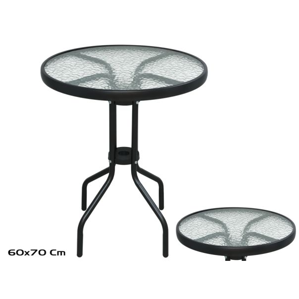 Baštenski sto sa okruglom staklenom pločom dimenzija 60 x 70 cm predstavlja praktično i estetski privlačno rešenje za terasu, balkon ili dvorište. Zahvaljujući kompaktnim dimenzijama, idealan je za manje prostore, pružajući dovoljno mesta za uživanje u kafi, osveženju ili laganom obroku na otvorenom.