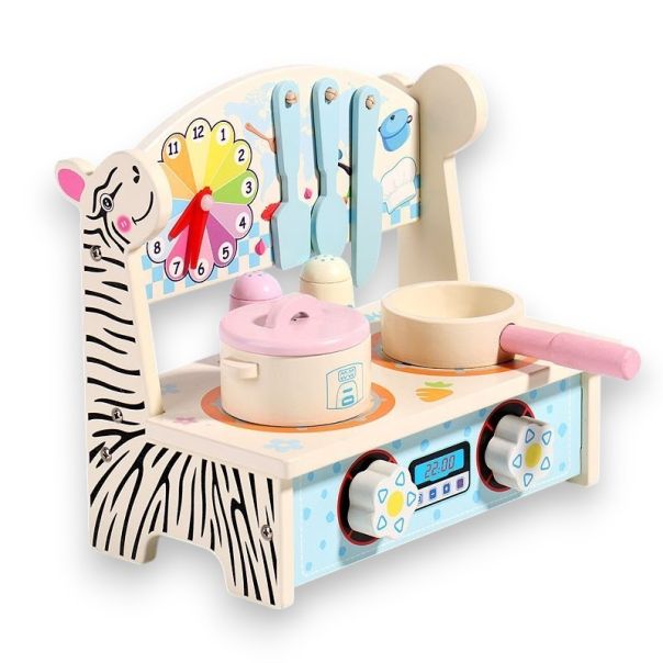 Napravljen od izdržljivog drveta i obojen netoksičnim materijalima, ovaj set uključuje realističan pribor za kuvanje, šerpe, tiganje i šporet sa okretanjem. brojčanici, pružajući bezbedno i privlačno okruženje za maštovitu igru.