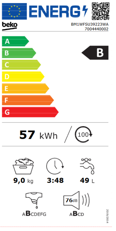BEKO mašina za pranje veša je opremljena dečijom sigurnosnom zaštitom, zaštitom od prelivanja i kontrolom neravnomerno raspoređenog veša, što osigurava bezbedno korišćenje. Automatsko prilagođavanje količine vode dodatno doprinosi efikasnosti i uštedi resursa. Potrošnja vode iznosi 49 litara po ciklusu, dok je godišnja potrošnja energije 57 kWh.