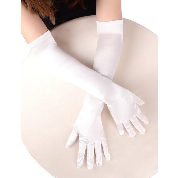 Unesite sofisticiranost i čistu eleganciju u svoj stajling uz ove bele dugačke rukavice od simuliranog svilenog materijala. Idealne su za formalne događaje, tematske zabave ili intimne trenutke, pružajući klasičan i ženstven izgled.
