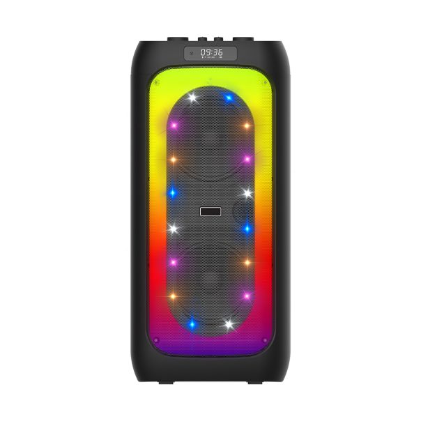 Bežični Bluetooth zvučnik sa dva mikrofona BKK K6502B u crnoj boji nudi impresivnu snagu od 2x25W i visok signal-šum odnos od 80dB. Sa Bluetooth verzijom 5.3, omogućava stabilno i brzo povezivanje sa svim uređajima. Sa frekvencijskim odzivom od 80Hz do 12kHz, pruža bogat i dinamičan zvuk. Zvučnik ima ugrađenu bateriju kapaciteta 6000mAh za dugotrajnu reprodukciju muzike. Dimenzije od 270 x 262 x 583 mm čine ga praktičnim za nošenje i upotrebu u svim okruženjima. Ulaz od 12V/1.5A omogućava brzo punjenje, dok dva mikrofona čine ovaj zvučnik idealnim za karaoke i prezentacije.
