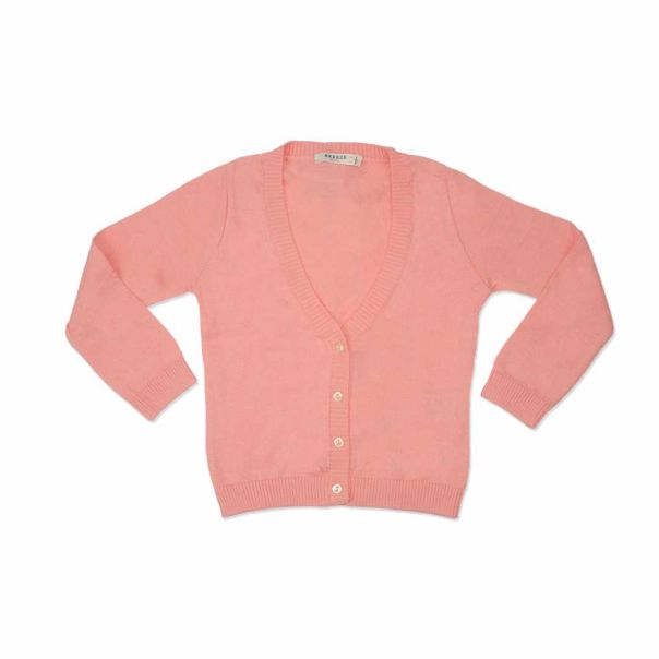 Dzemper sa dugim rukavima, v izrezom i kopcanje dugmićima napred. Rebrasti elastični rubovi.