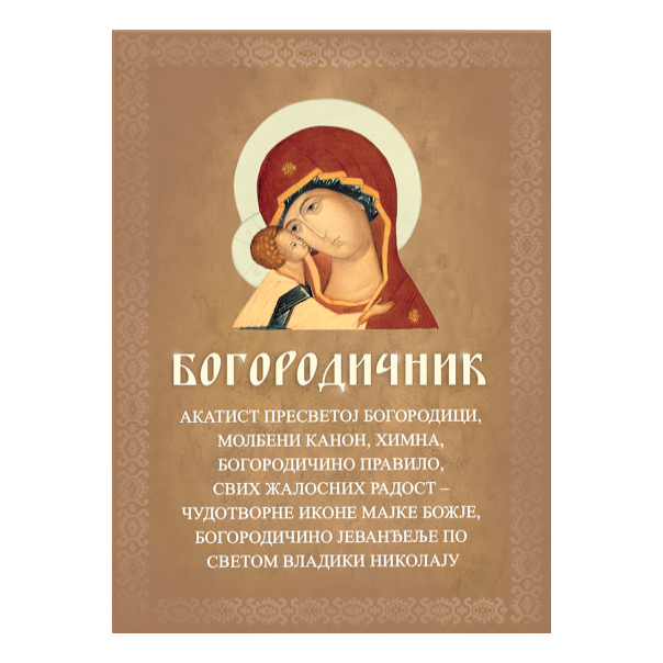 Bogorodičnik predstavlja molitvenik izrađen u punom koloru, u sebi objedinjuje četiri knjižice "Svih žalosnih Radost" sa molitvama i čudotvornim ikonama Presvete Bogorodice, koje su prvobitno objavljene u četiri nastavka, štampane u neznani broj primerka i tiraža tokom proteklih dvadeset godina. Sada je ovde pridodato još mnogo lepog i korisnog sadržaja, poput akatista i molbenog kanona, himne i Bogorodičinog pravila, takođe i Bogorodičinog Jevanđelja, satkanog od izabranih pouka svetog vladike Nikolaja. Zbornik je izrađen na 128 strana, u tvrdom i šiveno povezu, formata 12h17 cm.Godina_Izdanja:2024.|Format:12x17 cm|Povez:Tvrd|Pismo:Ćirilica|Izdavac:Knjiga Znamenje|Autor:Željko Perović|Zanr:Religija i mitologija|Broj_Strana:128