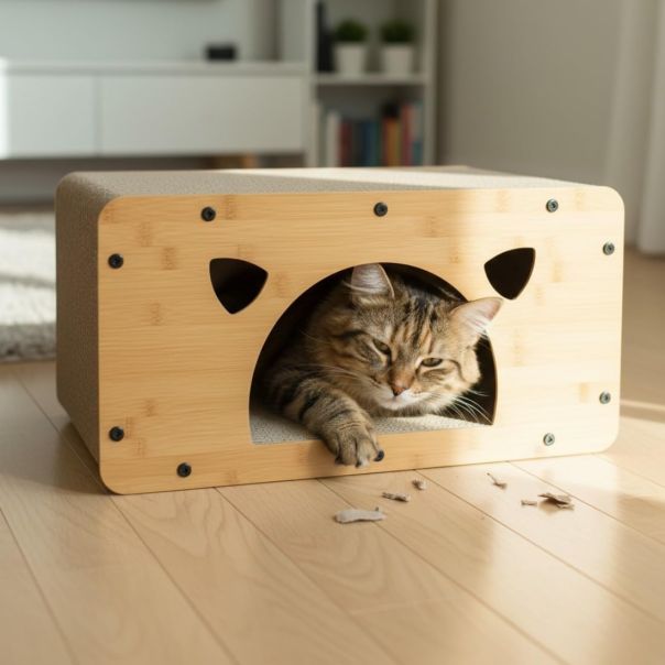 Kartonska Grebalica za Mačke sa Ležajem – Multifunkcionalni Krevet i Igračka Obezbedite vašoj mački savršeno mesto za igru, odmor i grebanje uz ovu praktičnu kartonsku grebalicu sa ležajem. Dizajnirana da zadovolji prirodne instinkte mačaka, ova grebalica je idealno rešenje za očuvanje vašeg nameštaja i sreću vašeg ljubimca. Izrađena od kvalitetnog talasastog (koriugovanog) kartona, grebalica je izuzetno izdržljiva, otporna na habanje i bezbedna za svakodnevnu upotrebu. Multifunkcionalni dizajn 2u1 – može se koristiti kao grebalica, udoban krevet ili mesto za igru, pružajući vašoj mački sve što joj je potrebno na jednom mestu. Pravougaoni oblik i moderan izgled lako se uklapaju u svaki enterijer, dok istovremeno privlače pažnju vaše mačke i podstiču je na korišćenje. Zahvaljujući stabilnoj konstrukciji i mogućnosti korišćenja sa više strana, grebalica se ne pomera lako i pruža dugotrajnu upotrebu. Mekana i udobna površina omogućava mački da se odmori i opusti, dok kompaktne dimenzije štede prostor u vašem domu. Ugrađena grebalica pomaže mačkama da prirodno troše kandže, čime se smanjuje potreba za grebanjem nameštaja, tepiha i zavesa.