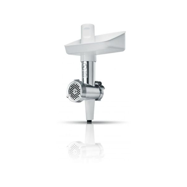 Ovaj dodatak dolazi sa rupičastim diskom prečnika 4,5 mm, koji omogućava precizno mlevenje mesa. Disk je izrađen od visokokvalitetnih materijala, što garantuje dugotrajnu oštrinu i efikasnost. Pored toga, dodatak uključuje i nož, otvor za dodavanje sastojaka, kao i pomagalo za punjenje, čime se olakšava proces pripreme hrane.