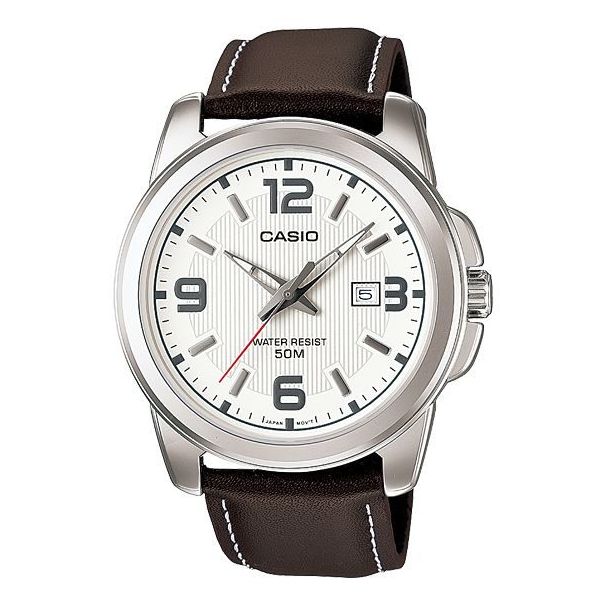 OPIS: Boja brojčanika: Bela Boja narukvice: BraonMaterijal kućišta: Nerđajući čelikMaterijal narukvice: KožaOblik kućištaOkrugloPrečnik kućišta: 45 mmVodootpornost: 5 ATMMehanizam: KvarcniPol: Muški