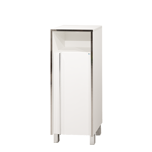 Front: Kvalitetni MDF u beloj boji visokog sjaja sa ABS kantom.