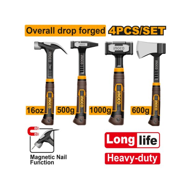 Super Ingco četvorodelni set je svestran i izdržljiv komplet alata dizajniran za širok spektar profesionalnih i hobi poslova, od tesarskih i mašinskih radova do građevinskih popravki. Set je napravljen sa fokusom na dugotrajnost, ergonomiju i efikasnost udarca.