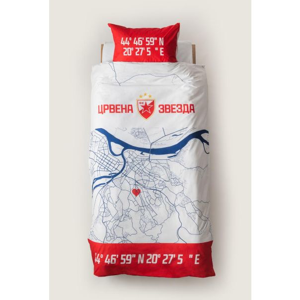 CRVENA ZVEZDA Jorganska navlaka i jastučnica 140x200cm, mapa grada