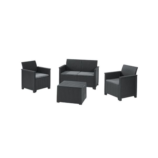 Baštenska garnitura Elodie 2 seater grafit Curver CU 253948 je idealna za uređenje bašte ili terase, čak i kada na raspolaganju nemate veliki prostor. Garnituru Elodie CU 253948 čine dve fotelje, sofa i stočić