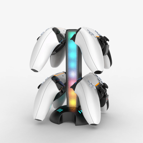 Podignite svoj gejming setup na viši nivo uz ovaj moderno dizajnirani stalak. Kreiran prvenstveno za PlayStation 5 kontrolere , ovaj dodatak kombinuje funkciju punjenja, atraktivno osvetljenje i mogućnost fizičkog prilagođavanja, čineći ga centralnim delom vašeg stola. Ključne prednosti: Podesiva visina stalka: Prilagodite ga svom prostoru. Ovaj model dolazi sa dva stalka za punjenje čije se visine mogu podešavati. Ovo vam omogućava da idealno pozicionirate kontrolere u odnosu na ostatak opreme ili monitor, što je retka i korisna funkcija. Integrisano RGB osvetljenje: Dinamična atmosfera. Ugrađene svetlosne trake pružaju futuristički izgled. Putem namenskog RGB dugmeta lako menjate režime osvetljenja, birajući onaj koji najbolje odgovara vašem trenutnom raspoloženju ili igri. Efikasno punjenje i skladištenje: Uvek spreman. Stalak služi kao sigurna baza za vaš kontroler kada ga ne koristite, istovremeno ga puneći. Izlazna snaga od 800mA osigurava pouzdano dopunjavanje baterije. Dodatni USB port: Više mogućnosti. Ugrađeni USB-A port (1.1A) omogućava vam da povežete i punite dodatne uređaje poput slušalica ili pametnog telefona direktno sa stalka. Stabilnost i kvalitet: Izrađen od čvrste ABS plastike u crnoj boji, ovaj stalak je lagan ali stabilan, dizajniran da se uklopi uz modernu konzolu. Tehničke specifikacije: Model: STK-DZ509 Tip: Stalak za punjenje (Single Charging Stand) Materijal: ABS Plastika Boja: Crna Ulaz (Input): 5V/2.6A (Preko PS5 konzole) ili 5V/3A (Preko AC adaptera) Izlaz (Output): Port za kontroler: 5V / 800mA USB A Port: 5V / 1.1A Dimenzije: cca 620 x 110 x 220 mm Težina: cca 335g