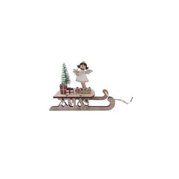 Drveni novogodišnji ukras Sanke sa anđelčićem