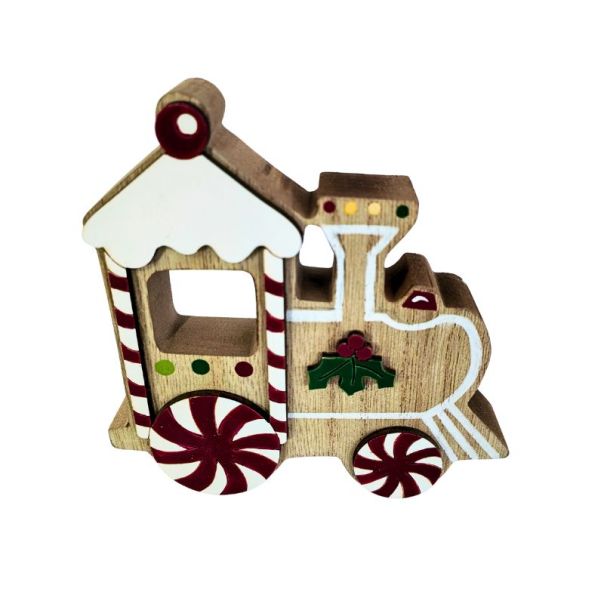 Osim što je vizuelno privlačan, drveni novogodišnji ukras Vozić je i funkcionalan. Može se koristiti kao samostalni ukras ili kao deo veće praznične postavke. Njegova stabilna konstrukcija omogućava lako postavljanje na različite površine, bilo da je to polica, sto ili prozorska daska.