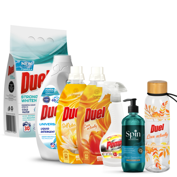 Duel Love actually set Flašica za vodu, staklena 500ml, prečnik 6,6 cm , visina 24,5 cm DUEL Formulacija omekšivača Love Actually sadrži silikon, funkcionalan dodatak, koji doprinosi boljoj mekoći tkanine, olakšava peglanje, daje punoću i bogat osećaj na dodir. U sinergiji sa mirisom koji je intenzivan i dugotrajan, dobijamo efekte koji se očekuju od vrhunskog omekšivača. Miris omekšivača Love Actually je svež i istovremeno sladak, cvetnovoćni miris sa dugotrajnim efektima svežine. Intenzitet pripada citrusnoj noti pojačanoj mirisom nane, ruže i vodenog cveta, koju zaokružuje jačina drvene note, ambera i mošusa u bazi koju osvežava voćni miris breskve. DUEL Praškasti deterdžent Strong Whiteness 2.7kg je savršen izbor za dubinsko čišćenje i očuvanje besprekorne beline vaše odeće. Ovaj inovativni i efikasni deterdžent pruža izvanredne performanse u pranju, uklanjanju mrlja i osvežavanju tkanina. Pogodan za mašinsko i ručno pranje, Duel Strong Whiteness je idealan za svakodnevnu negu bele odeće, vraćajući joj prvobitni sjaj i intenzivnu belinu. Duel Strong Whiteness praškasti deterdžent je obogaćen sredstvom za izbeljivanje na bazi kiseonika koje garantuje bolje rezultate izbeljivanja. Njegova formula sa mešavinom enzima omogućava dubinsko enzimsko pranje, efikasno uklanjajući mrlje i prljavštinu. Ovaj deterdžent je idealan za sve vrste bele odeće i pruža vrhunske rezultate čak i na nižim temperaturama, već od 30°C.. Ovaj deterdžent je savršen saveznik za održavanje čistoće i svežine vaše bele odeće. Omekšivač Duel Soft Lotus pruža tvojoj odeći neodoljivu mekoću. • MIRIS: Uživaj u dugotrajnom i intenzivnom mirisu lotosa koji će tvoj veš održavati svežim danima. • KONCENTRACIJA: Zahvaljujući visokoj koncentraciji, ovaj omekšivač od 1.7l trajaće ti duže, čineći ga ekonomičnim izborom. • NEŽNOST: Posebno formulisan da bude nežan prema tkaninama, čuva strukturu i boju tvoje odeće.. Duel Soft Lotus omekšivač je savršen za svakodnevno pranje, ostavljajući tvoj veš prijatan na dodir. Tražiš način da tvoj veš bude ne samo čist, već i neodoljivo mekan? Duel Omekšivač za veš Soft Lotus je pravi izbor za tebe Njegova formula osmišljena je tako da pruži tvojoj odeći maksimalnu mekoću, a istovremeno je obogaćuje prijatnim i dugotrajnim mirisom lotosa. Zamisli kako tvoja omiljena odeća miriše danima nakon pranja, zahvaljujući visokoj koncentraciji ovog omekšivača. Koristi Duel Omekšivač za veš Soft Lotus u svakom pranju i osiguraj da tvoj veš bude mek i svež Ne propusti priliku da tvoja odeća bude najprijatnija za nošenje Dodaj ga u svoju rutinu pranja veša i oseti razliku već nakon prvog korišćenja. Duel Tečni Detergent Universal 2.45L: Savršeno Rešenje za Čistoću Vašeg Veša Efikasno Uklanjanje Mrlja i Prljavštine Duel Tečni Detergent Universal od 2.45L nudi snažnu formulu koja efikasno uklanja prljavštinu i tvrdokorne mrlje sa svih vrsta tkanina. Prikladan za Sve Temperature Jedna od ključnih prednosti Duel Universal deterdženta je njegova sposobnost da pruži odlične rezultate pranja na svim temperaturama. Pakovanje od 2.45L predstavlja ekonomičan izbor za domaćinstva koja traže kvalitetno i dugotrajno rešenje za pranje veša. Sa svakim pranjem, Duel Universal deterdžent pruža maksimalan učinak i optimalnu svežinu, čineći vašu rutinu pranja efikasnijom i praktičnijom. Duel tečni detergent Universal takođe neutrališe neprijatne mirise na odeći. Duel Universal tečni detergent može se kombinovati sa Duel omekšivačima za veš. Zaključak Duel Tečni Detergent Universal 2.45L nudi više od čistoće - pruža negu i zaštitu za svaki komad vaše garderobe. POMPA Sredstvo za odmašćivanje 500ml POMPA Sredstvo za odmašćivanje je vaš idealan saveznik u borbi protiv masnoće i tvrdokornih nečistoća. Njegova moćna formula prodire duboko u nečistoće, omogućavajući lako i brzo čišćenje. Bez obzira na to koliko su tvrdokorne mrlje, POMPA Sredstvo za odmašćivanje će ih ukloniti bez napora, ostavljajući površine sjajnim i čistim. Univerzalna upotreba POMPA Sredstvo za odmašćivanje je pogodno za sve perive površine, što ga čini univerzalnim rešenjem za vaše potrebe čišćenja. Bilo da se radi o pločicama, radnim površinama, sudoperama ili drugim površinama, možete biti sigurni da će ovo sredstvo obaviti posao na najvišem nivou. Jednostavna primena Upotreba POMPA Sredstva za odmašćivanje je jednostavna i praktična. Samo nanesite sredstvo na željenu površinu, ostavite da deluje nekoliko minuta, a zatim obrišite krpom ili sunđerom. . POMPA Sredstvo za odmašćivanje je i sigurno za upotrebu. Njegova formula je ekološki prihvatljiva, što znači da možete čistiti bez brige o štetnim hemikalijama. Uživajte u čistom i zdravom okruženju uz POMPA Sredstvo za odmašćivanje. Učinite čišćenje jednostavnim i efikasnim uz POMPA Sredstvo za odmašćivanje 500ml. Iskusite moćno uklanjanje masnoće i nečistoća na svim perivim površinama i uživajte u besprekornoj čistoći svakog dana. SPIN Deterdžent za pranje sudova DWL Premium Fresh Sensation 650ml Vrhunska efikasnost čišćenja SPIN Deterdžent za pranje sudova DWL Premium Fresh Sensation donosi izuzetnu moć čišćenja koja lako uklanja čak i najtvrdokornije masnoće i nečistoće. Mirisne note Gornje note: zamrznuti grejpfrut, limeta, listovi bergamota Srednje note: morski akordi, ledena nana, ruzmarin Donje note: pačuli, mošus, drvenaste note, amber Pantenol za zaštitu ruku SPIN Fresh Sensation ne samo da efikasno čisti, već i neguje vaše ruke. Zahvaljujući pantenolu, vaša koža ostaje hidrirana i zaštićena prilikom svakog pranja, čineći ovaj deterdžent idealnim izborom za svakodnevnu upotrebu. Premium pakovanje inovativnog dizajna Elegantna bočica sa pumpicom olakšava doziranje i savršeno se uklapa u enterijer svake savremene kuhinje. Pored st