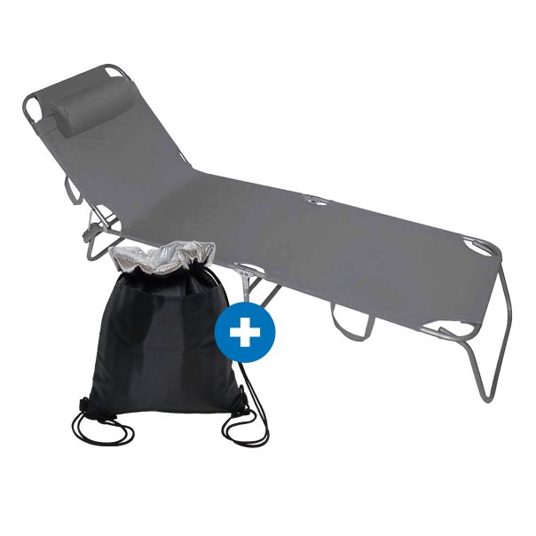 eHomeGarden Ležaljka sa jastukom siva + rashladna torba