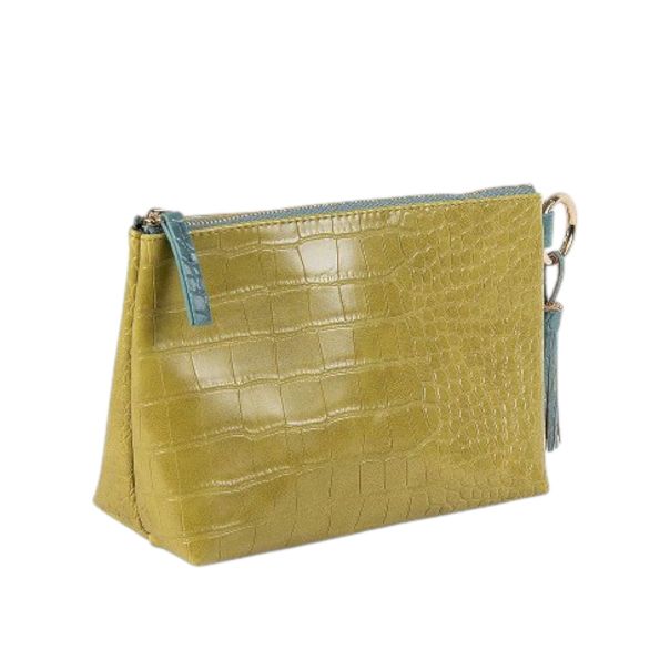 Elegantna i izrazito sofisticirana torbica brenda Artebene, dizajnirana za ljubitelje luksuznih detalja i besprekorne estetike. Izrađena u upečatljivoj maslinasto-zelenoj nijansi sa suptilnom teksturom krokodilskog reljefa, ova torbica donosi savršen balans modernog dizajna i bezvremenskog šarma. Zlatni rajsferšlus i dekorativni privesak sa resama dodaju notu profinjenog glamura i naglašavaju premium karakter proizvoda.
