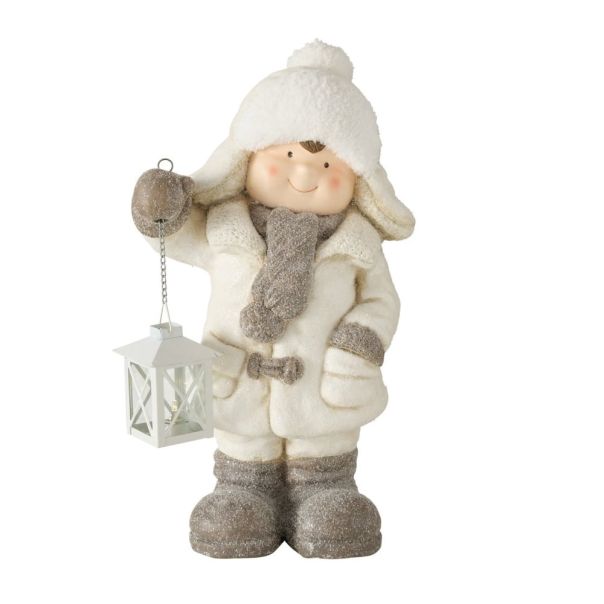 Figura je pažljivo izrađena od visokokvalitetne keramike, sa posebnim akcentom na detalje. Zimsko odelo deteta je bogato teksturirano, sa realističnim naborima i detaljima koji dočaravaju osećaj topline i udobnosti. Fenjer koji dete drži u ruci dodaje dodatni sloj autentičnosti i može poslužiti kao simbol svetlosti i nade tokom prazničnih dana.