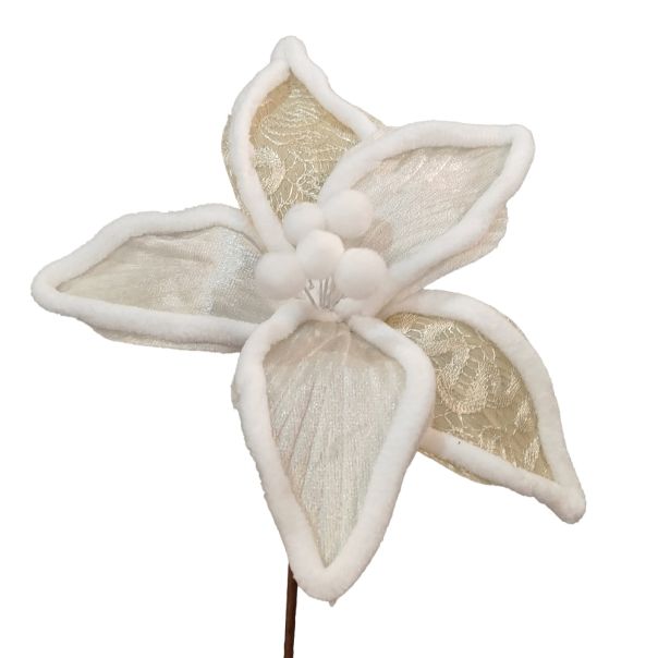 ENA Novogodišnji ukras Cvet 32cm 566462: Elegancija u zlatno-beloj kombinaciji