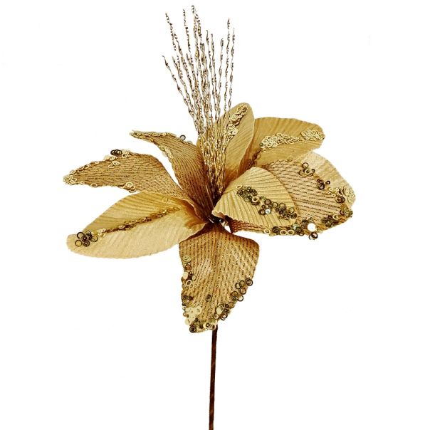 ENA Novogodišnji ukrasni cvet 31cm 24EN1901, zlatna