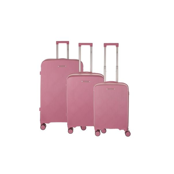 Koferi kombinuju moderan dizajn i vrhunsku funkcionalnost, izrađeni su od izuzetno izdržljivog, ali laganog polipropilena koji pruža pouzdanu zaštitu i otpornost na udarce tokom putovanja. Zahvaljujući ojačanoj aluminijumskoj teleskopskoj ručki, upravljanje koferom je stabilno i jednostavno, dok četiri dupla točkića sa rotacijom od 360° omogućavaju lako i glatko kretanje u svim pravcima. Unutrašnjost je obložena mekom postavom u sivoj boji, koja unosi dozu elegancije, štiti sadržaj i olakšava organizaciju. Dodatni nivo sigurnosti obezbeđuju glavni rajsferšlus sa zaštitom od krađe i brava, idealna za sigurnu kontrolu prtljaga na međunarodnim aerodromima.