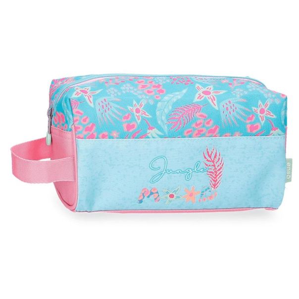 Enso JUNGLE MOOD dečiji neseser donosi nežne tirkizno-roze tonove i floralne motive u prepoznatljivom razigranom stilu kolekcije. Napravljen je od izdržljivog poliestera koji dobro podnosi svakodnevnu upotrebu, pa je idealan za putovanja, ekskurzije i školsku rutinu.