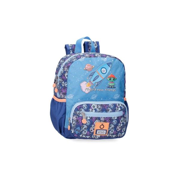 Enso NEW FRIENDS ranac za vrtić donosi vesele vanzemaljce, raketicu i kombinaciju plavih tonova koja odmah osvaja klince. Napravljen je od kvalitetnog, laganog poliestera i idealan je za vrtić, kraće izlete i svakodnevne aktivnosti.