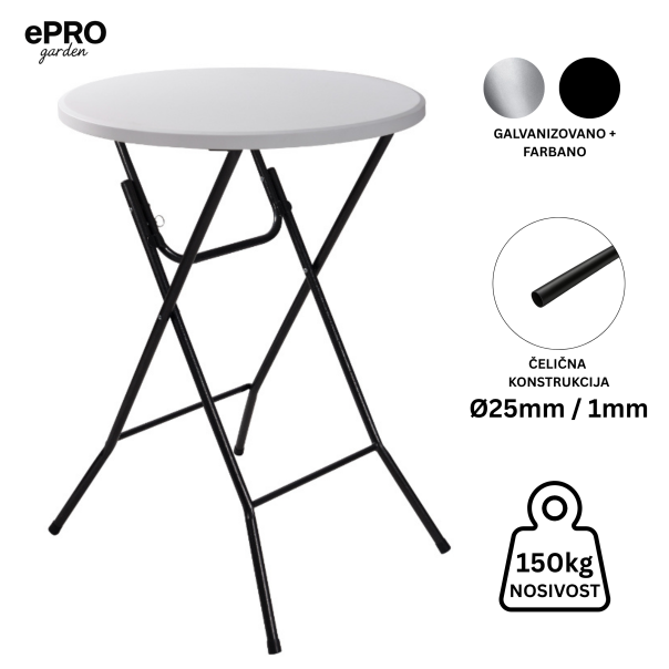 | Naziv, vrsta robe, model | ePRO sklopivi baštenski barski sto Ø80 110cm, metal-plastika |