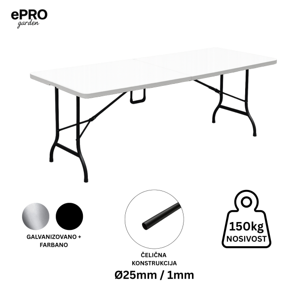 Naziv artikla: ePRO Garden sklopivi baštenski sto 180x74x74cm, metal-plastika