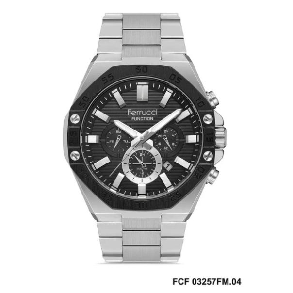 OPIS: Boja brojčanika: Crna Boja narukvice: Srebrna Materijal kućišta: ČelikMaterijal narukvice: ČelikOblik kućištaOkrugloPrečnik kućišta: 45 mmVodootpornost: 3 ATMMehanizam: KvarcniPol: Muški