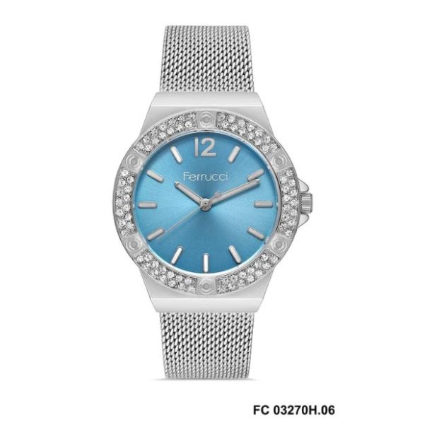 OPIS: Boja brojčanika: Svetlo plava Boja narukvice: Srebrna Materijal kućišta: ČelikMaterijal narukvice: ČelikOblik kućištaOkrugloPrečnik kućišta: 35 mmVodootpornost: 3 ATMMehanizam: KvarcniPol: Ženski